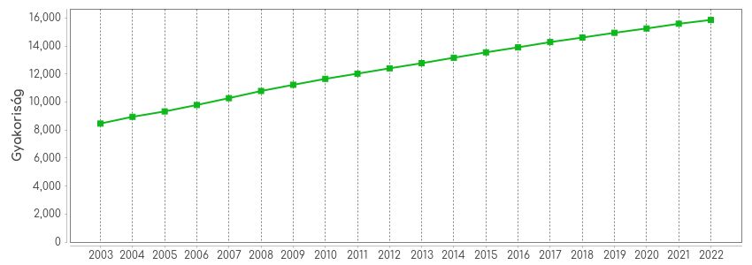 Jelenleg a 87. leggyakoribb női név, a nők 0.15%-a viseli ezt a nevet. Nézd meg a teljes listát.